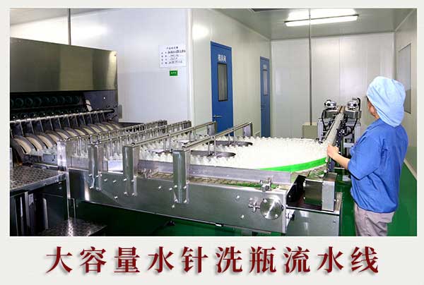 能生产50、100、250、500毫升四种玻璃瓶产品,整线采用西门子PLC及触摸屏控制,配置比较高端,具备隔膜阀精准分装、百级层流、在线清洗、在线灭菌等功能,生产环境均在百级层流密闭环境生产,保证了药品的可靠性。年生产总量高达2000万支,成为国内自动化程度高、配置较为先进的大容量产品生产基地。该生产线先后通过欧洲、澳洲、非洲等多个国家官方验收。